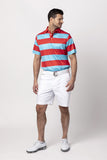 RANCHO RUGBY STRIPE POLO SHIRT | RED/BAHAMA BLUE